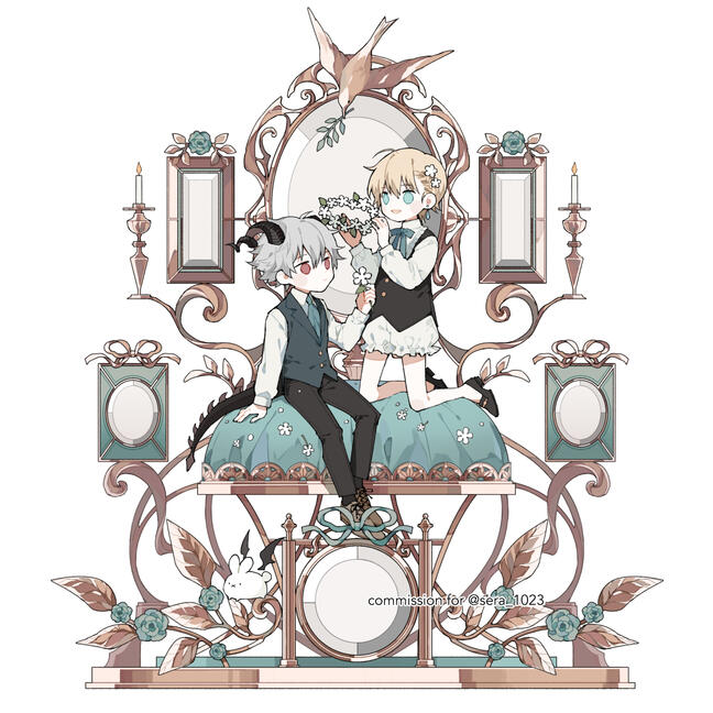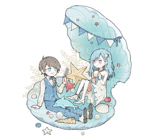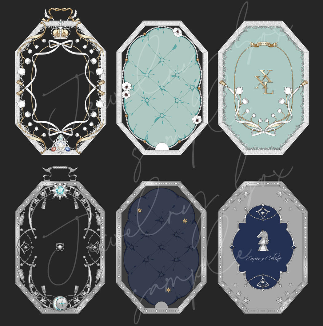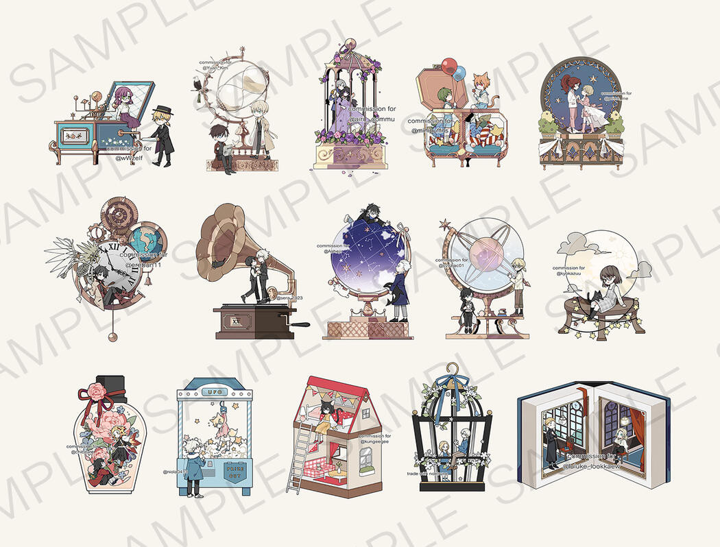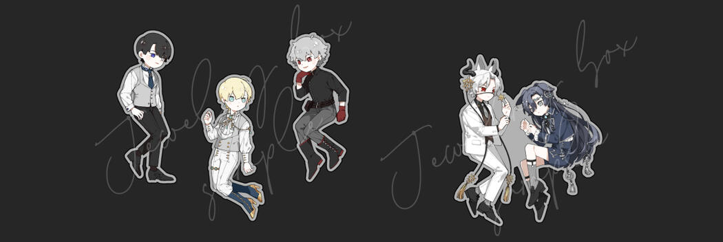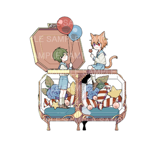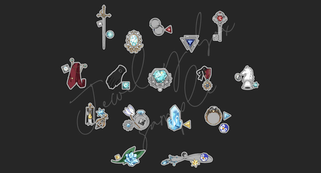 This type of commission is a mix of illustration and acrylic keychain work, based on the concept of a jewelry box or treasure chest. It started from the idea of gathering meaningful items or gifts that belong to a character and turning them into a keepsake illustration to preserve those special memories.